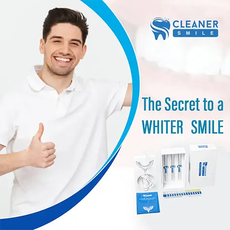 Cleaner Smile teeth whitening system delivers whitening results similar to those you'll get by visiting your dentist. Save money by eliminating uncomfortable visits to the dentist while achieving the same results. Have that whiter and brighter smile just like your favorite celebrities.
